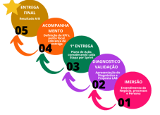 Es un viaje de 5 pasos con estrategias para ayudar a tu empresa, considerando entregables importantes dependiendo de cada negocio. Entre ellos están: